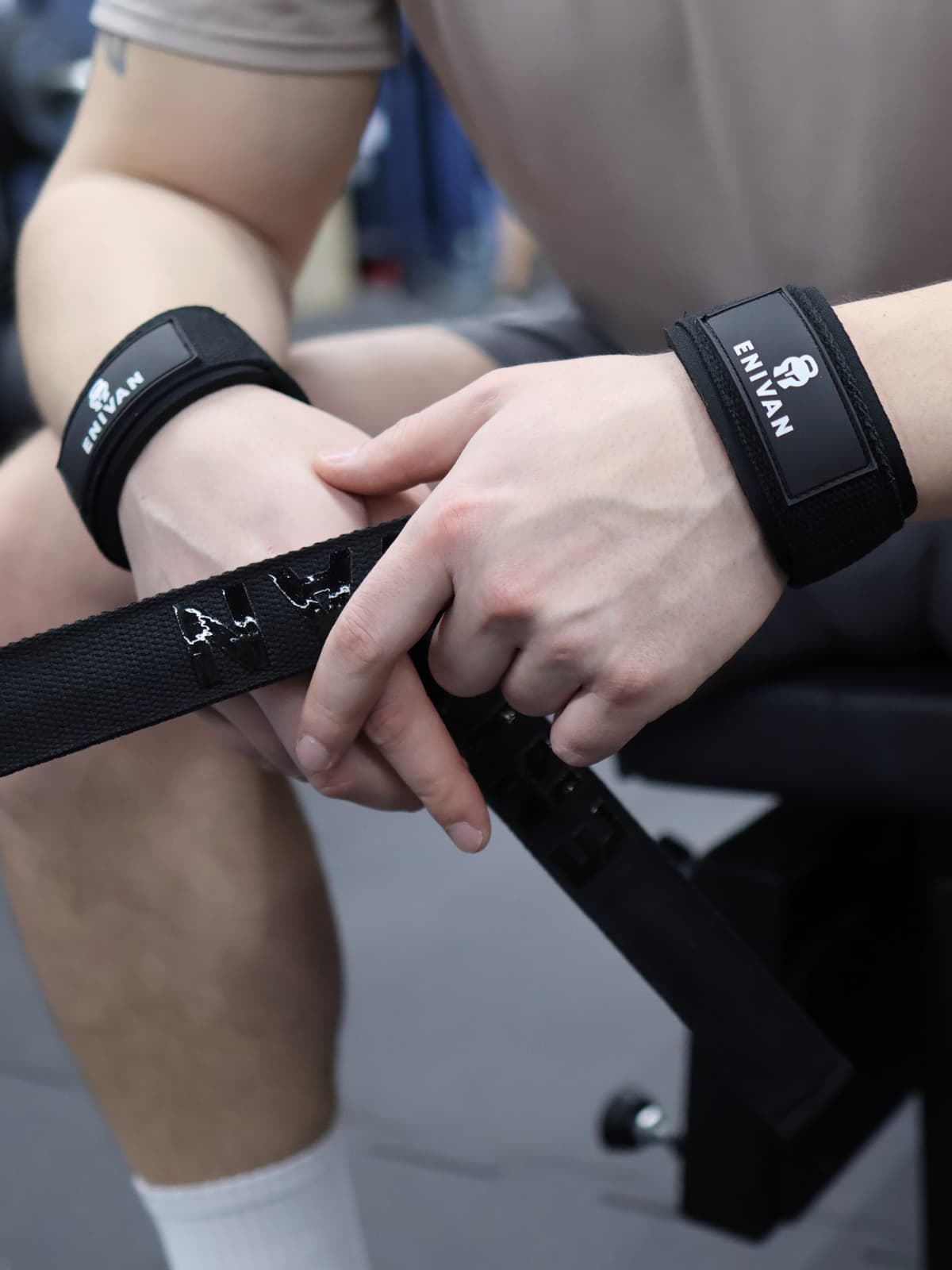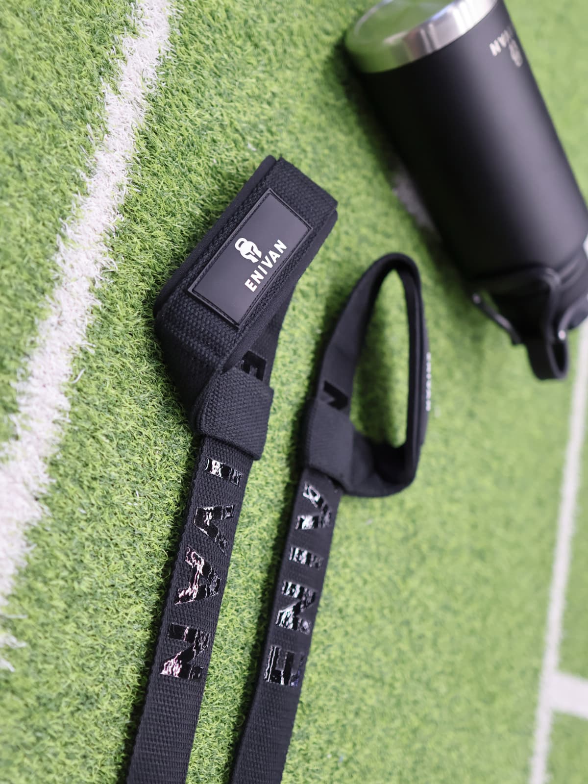 Sangle en coton (60 cm × 4 cm) pour une bonne tenue en main, et logo appliqué sur base caoutchouc pour une finition durable. Vendues par paire, les sangles AutoGrip Enivan® sont conçues pour vous accompagner entraînement après entraînement.